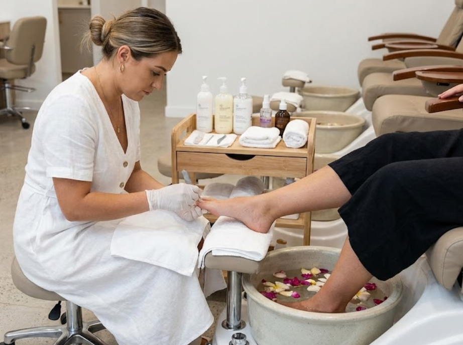 Pedicure at Dermo Glamm Aesthetic Clinic is a professional foot care treatment designed to cleanse, exfoliate, moisturize, and rejuvenate tired feet. This relaxing service improves foot hygiene, softens skin, and enhances the overall appearance of your feet.